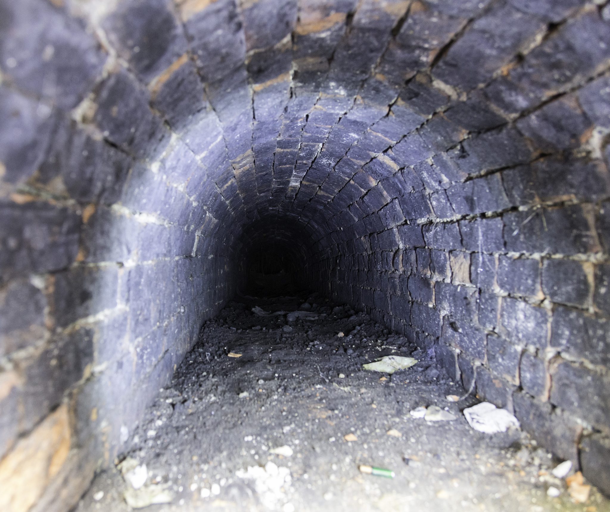 So the bricks were stacked up on one side of the tunnel and the loose mortar and plaster was swept into a pile beside the bricks.