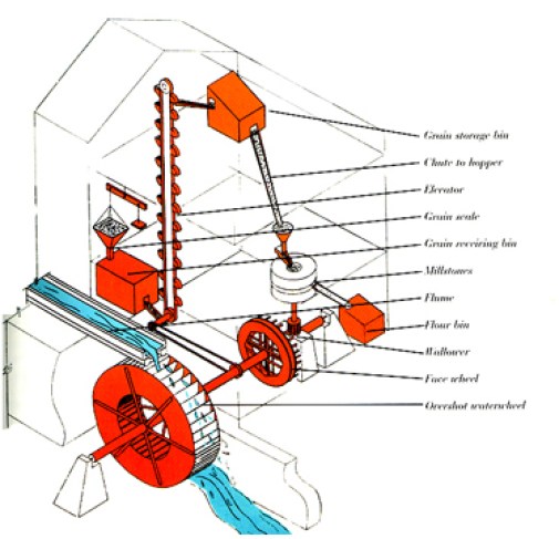 1) The illustration above is from ‘The tide Mill Institute’. A tide mill is another type of water-powered mill you can learn about.